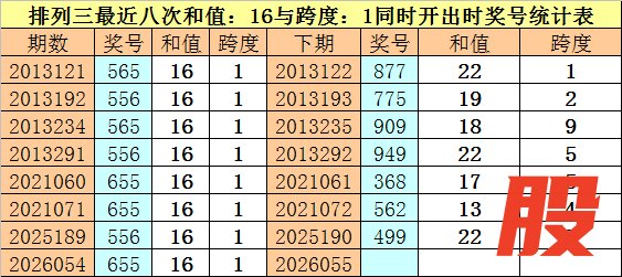 开奖回顾:体彩排列三第2026054期奖号为:655。和值为:16,跨度为:1。