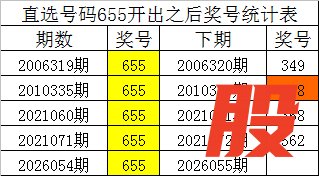 从上表统计可以看出,直选号码655开出之后,其下期奖号: