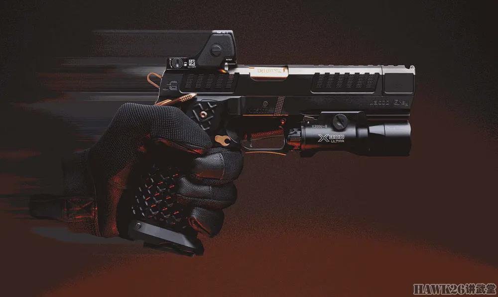 NOX 9防尘罩上直接加工出皮卡汀尼导轨,可以安装战术灯、激光指示器等附件。创新的7071-T6铝合金握把护板,采用黑色硬质阳极氧化涂层,出色的人体工程学设计让手掌能够完美贴合握把,从而实现高位握持,提高射击操控性。