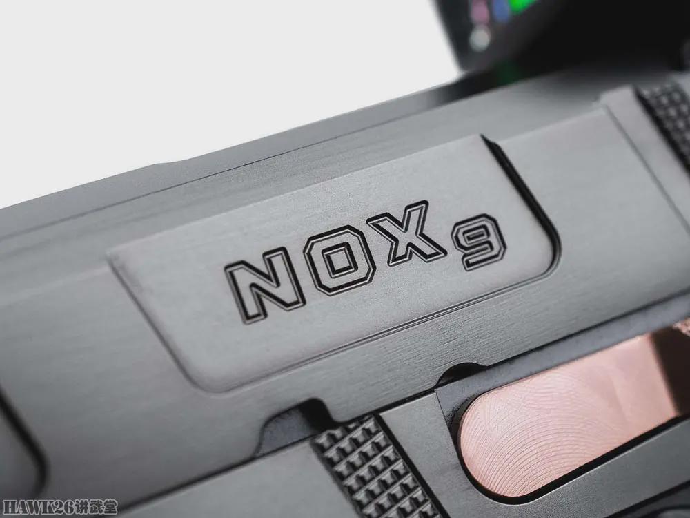 NOX 9采用独有的专利抛壳口设计,进一步提高射击可靠性。NOX 9套筒前后都有设计复杂的防滑纹路,顶部有微型红点瞄准镜接口,可以安装Trijicon RMR接口的瞄准镜。