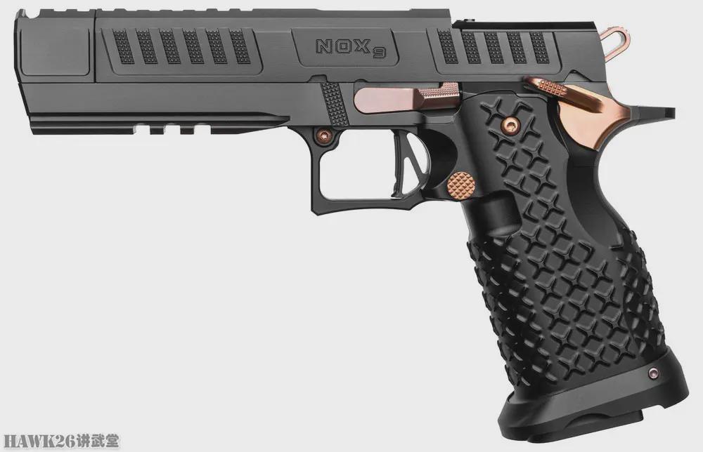 雅各布·格雷枪械公司总部位于南卡罗来纳州,专门生产用于应用射击比赛的2011型手枪——采用双排弹匣的1911型手枪。该公司创始人亲自参与该枪的设计工作,经历12年的研究、设计和开发工作,NOX 9手枪给人带来眼前一亮的感觉。